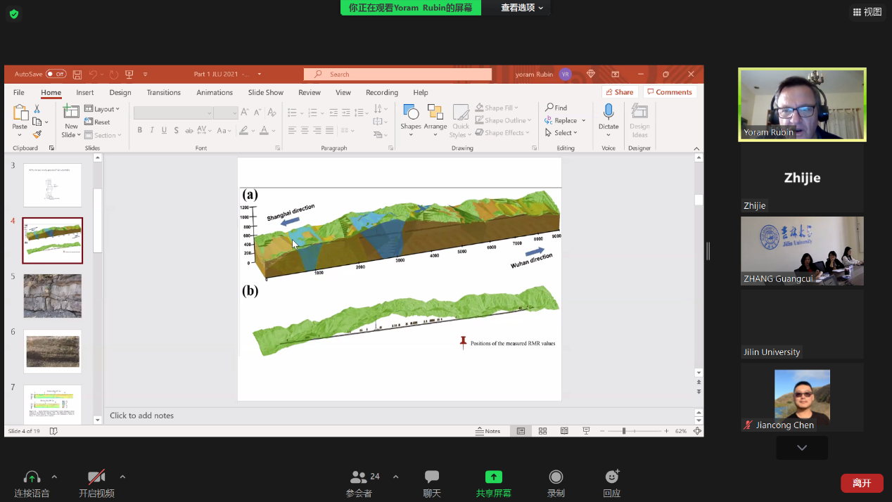 The online course consisted of 20 hours of lectures and 4 seminars, with Professor Yoram Rubin and his team teaching a cutting-edge course on intelligent simulation and early warning of the underground environment based on stochastic geostatistics and deep learning theory. Over 30 students and 4 young faculty members from the College of Construction Engineering and the College of New Energy and Environment of Jilin University participated in the online course.