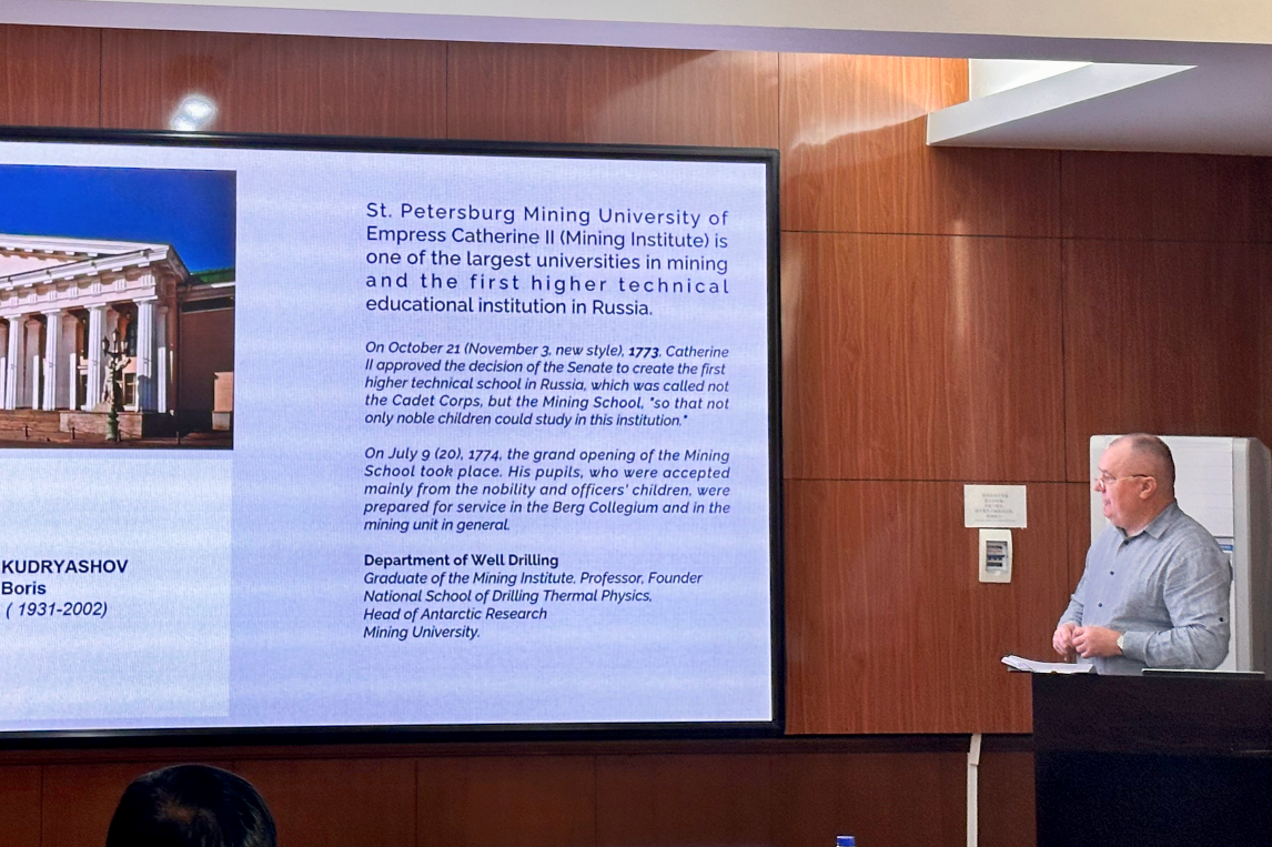 At this sub-forum event, Professor Chisliakov and Researcher Lykov presented three in-depth academic reports to the teachers and students of the college. First, they reviewed the history of the ultra-deep drilling project during the Soviet era and shared the technical challenges encountered during the project's initiation and implementation. These experiences are of great value for deepening the understanding of the Earth's deep structure and promoting the development of drilling technologies. Then, the experts introduced in detail the drilling grouting technology widely applied in Russia, emphasizing its crucial role in enhancing the waterproofness, stability, and safety of underground structures, which is of vital importance for the environmental protection and economic benefits of tunnels and mines. Finally, they shared the core achievements of the Baikal Drilling Project. Through drilling in different geological structures of Lake Baikal, valuable paleoclimatic and geological data were obtained, providing precious references for the study of paleoclimatic changes in Asia and even globally. These reports not only provided the participants with cutting-edge academic information but also opened up new ideas for the college's future research directions.